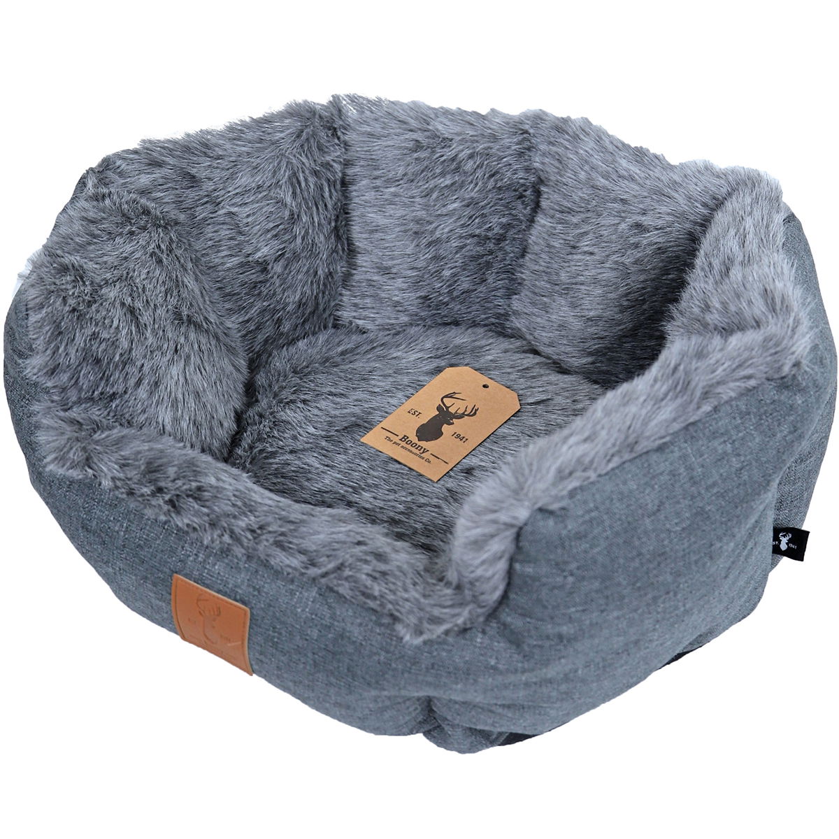 De Boony Mand Badger Grey 50 cm is een ruime en elegante mand, perfect voor middelgrote huisdieren zoals honden en katten. Deze grotere variant in een stijlvolle grijze kleur biedt voldoende ruimte voor comfortabel rusten en slapen.