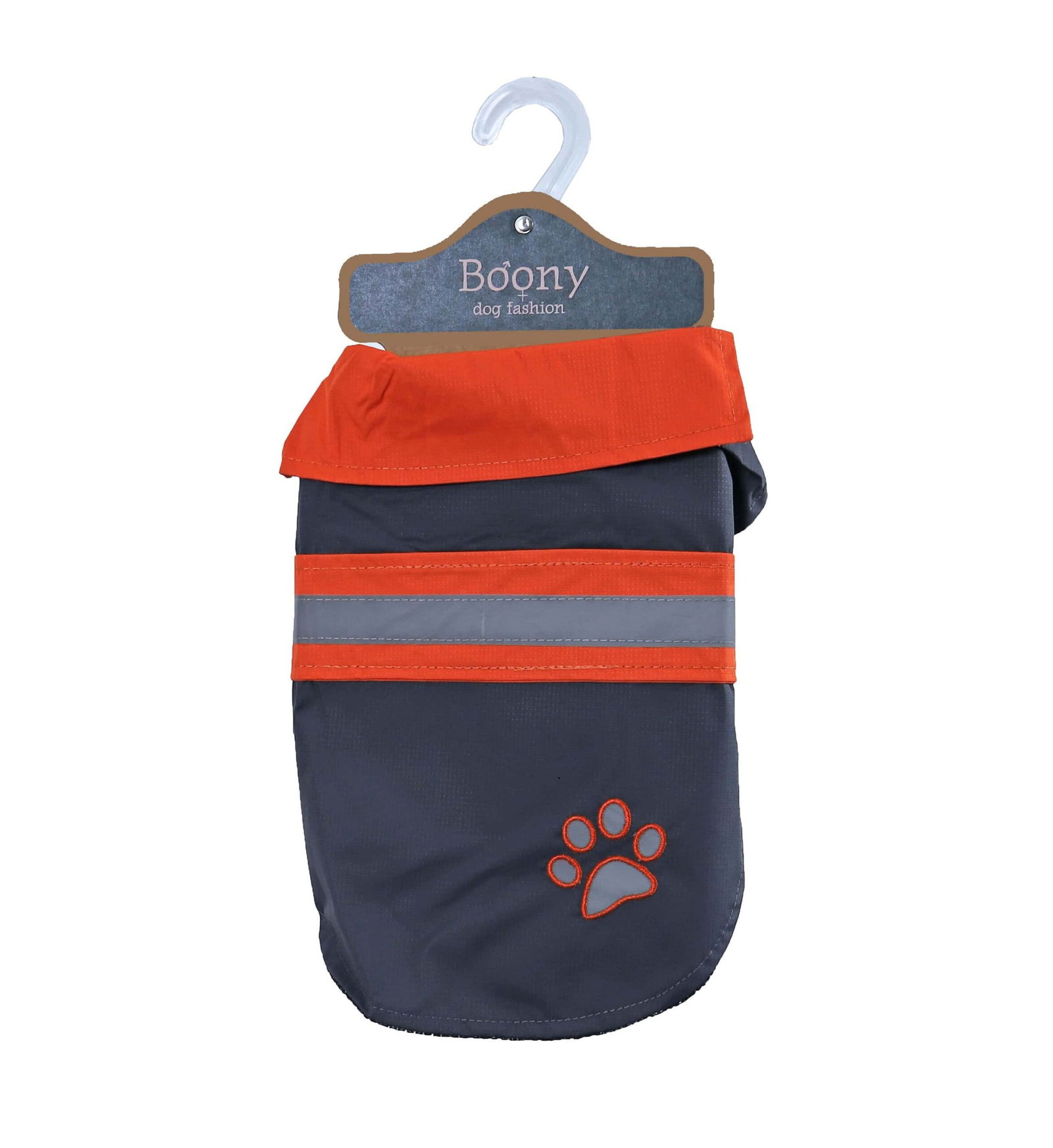 De Boony Honden Regenjas is gemaakt van waterdicht materiaal om je hond droog te houden bij nat weer. De jas is voorzien van verstelbare banden rond de nek en de buik voor een goede pasvorm, terwijl de reflecterende strips zorgen voor zichtbaarheid en veiligheid tijdens wandelingen in het donker.
