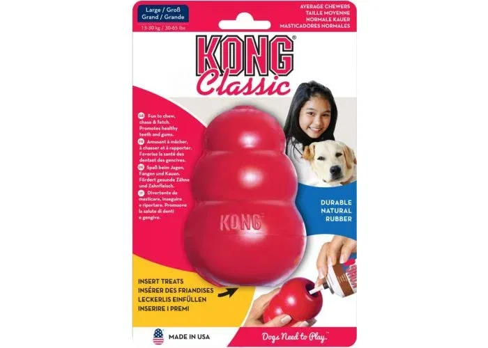 Maak kennis met de Kong Original, een robuust kauwspeeltje voor grote honden, gemaakt van duurzaam rubber. Dit speeltje is ontworpen om zelfs de meest enthousiaste kauwers bezig en vermaakt te houden. Met een grootte die speciaal is aangepast voor grotere hondenrassen, biedt de Kong Original een veilige en betrouwbare manier om kauwdrang te bevredigen, wat essentieel is voor de mondhygiëne en het algemeen welzijn van je hond.