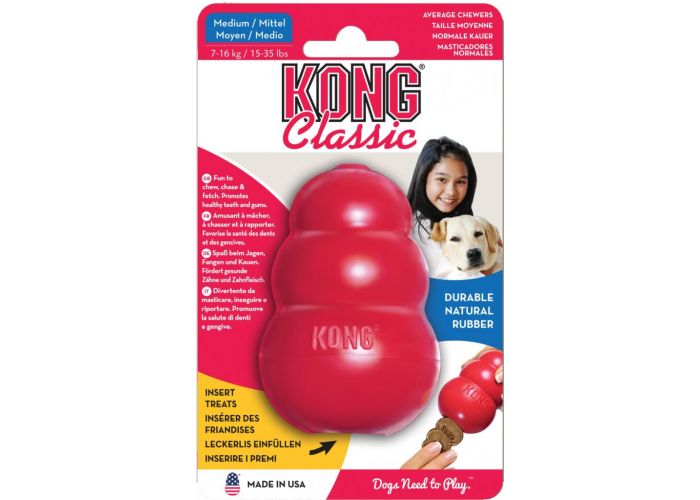 Geef je hond urenlang kauwplezier met de Kong – Original Rubberen Kauwer – Medium. Dit iconische speelgoed is al jarenlang favoriet bij honden en hun baasjes vanwege zijn duurzaamheid en veelzijdigheid. Gemaakt van natuurlijk rubber. De Kong is ontworpen om te voldoen aan de natuurlijke kauwbehoefte van je hond en tegelijkertijd zijn tanden en tandvlees te reinigen en te versterken.