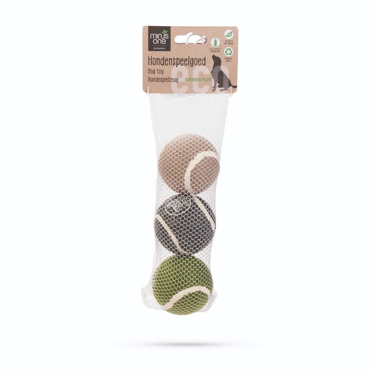 De Minus One Tennisballen zijn een set van drie klassieke hondenspeelgoedballen, ontworpen voor eindeloos apporteerplezier. Deze ballen zijn perfect voor interactieve speelsessies tussen hond en eigenaar.